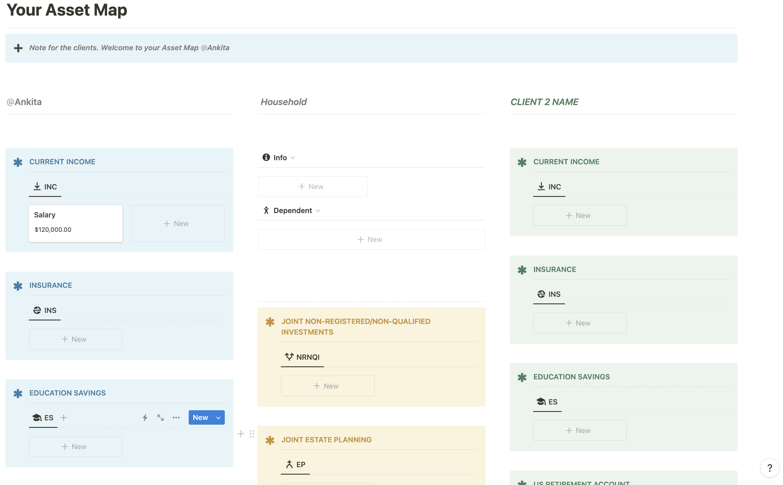 Streamlined Workflow Management: To develop a structured and efficient operational process using Notion, tailored to the unique needs of financial planning and client management.